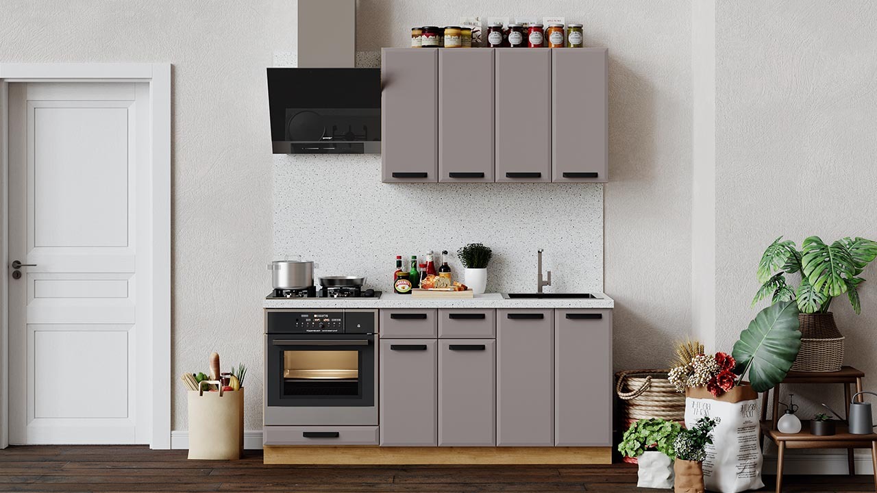 | Габаритный размер набора модулей без учета газовой плиты1 800 | Оттенок фасадаКоричневый | Цвет фасадаМокко супермат |
