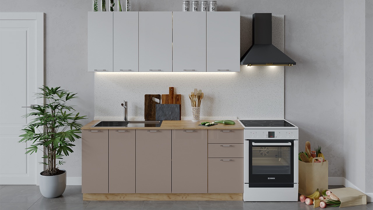 | Габаритный размер набора модулей без учета газовой плиты1 800 | Оттенок фасадаБелый, Коричневый | Цвет ручкиАлюминий, Хром |