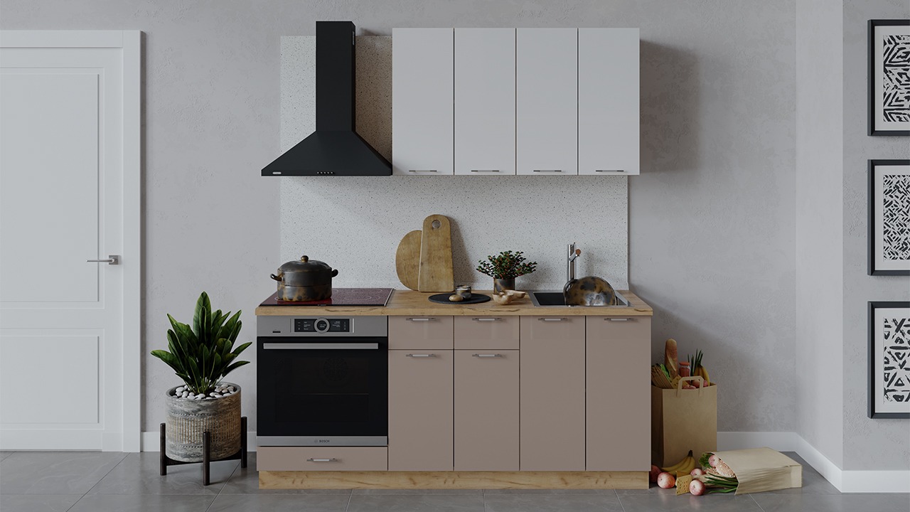 | Габаритный размер набора модулей без учета газовой плиты1 800 | Оттенок фасадаБелый, Коричневый | Цвет ручкиАлюминий, Хром |