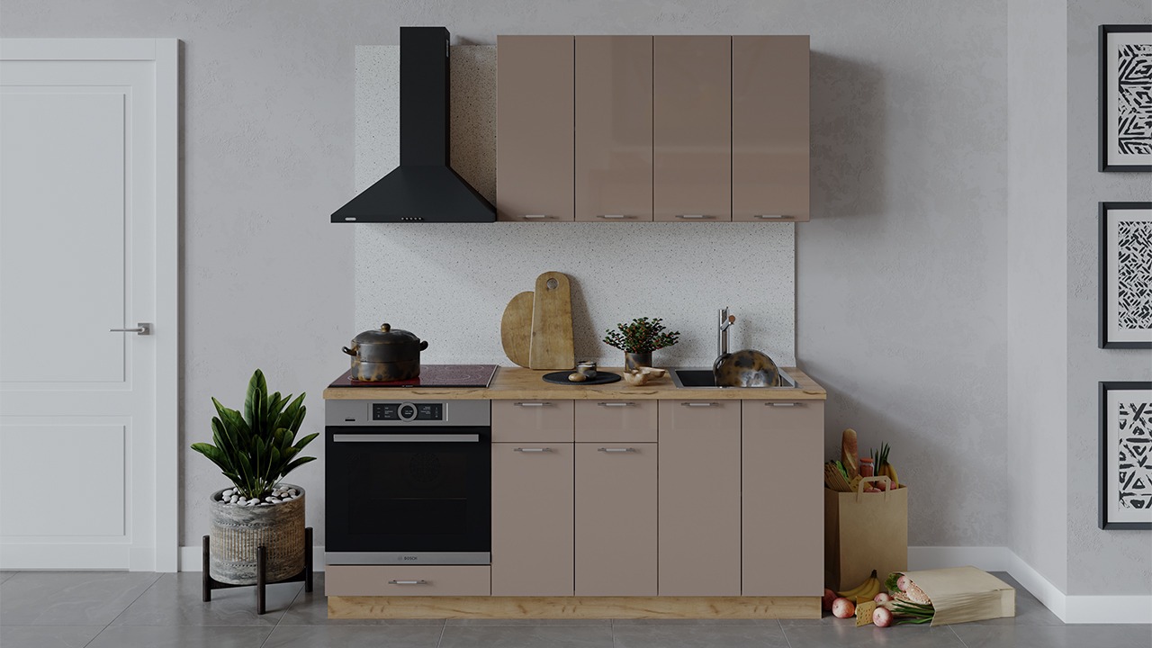 | Габаритный размер набора модулей без учета газовой плиты1 800 | Оттенок фасадаКоричневый | Цвет ручкиАлюминий, Хром |