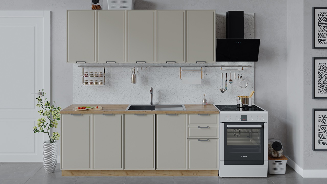 | Габаритный размер набора модулей без учета газовой плиты2 000 | Оттенок фасадаБежевый | Цвет ручкиМеталл |