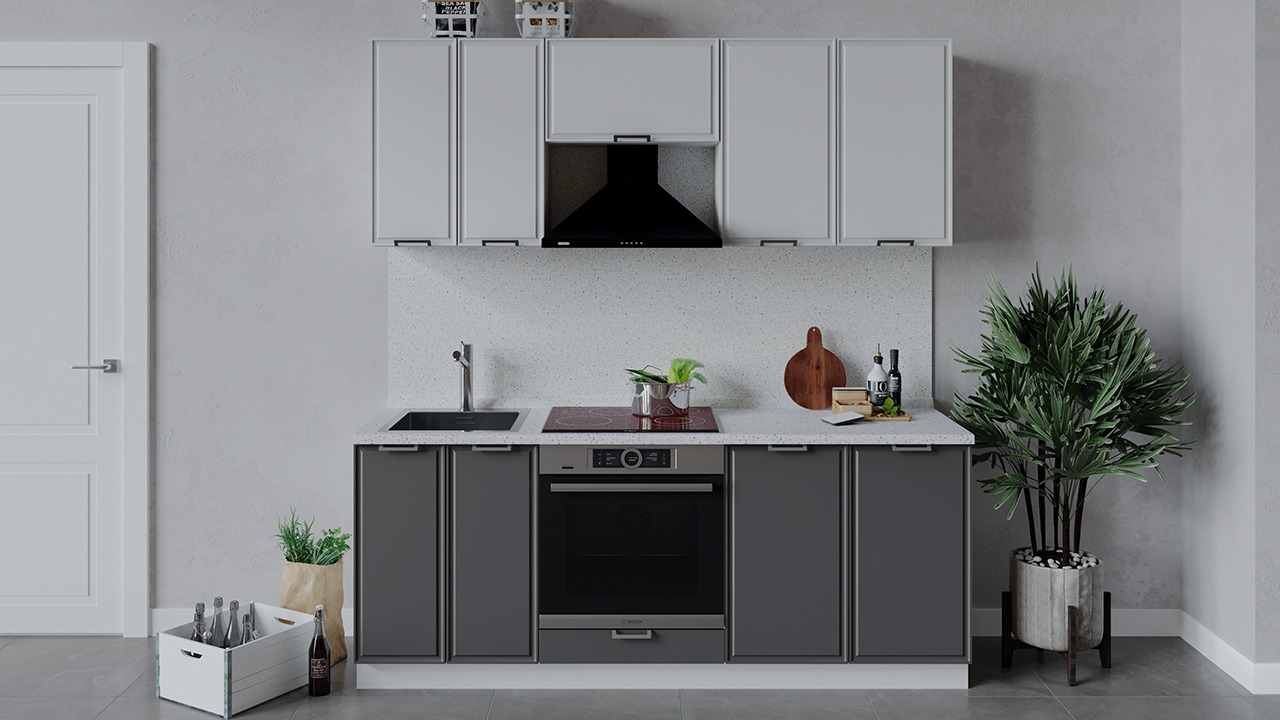 | Габаритный размер набора модулей без учета газовой плиты2 000 | Оттенок фасадаБелый, Серый | Цвет ручкиМеталл |