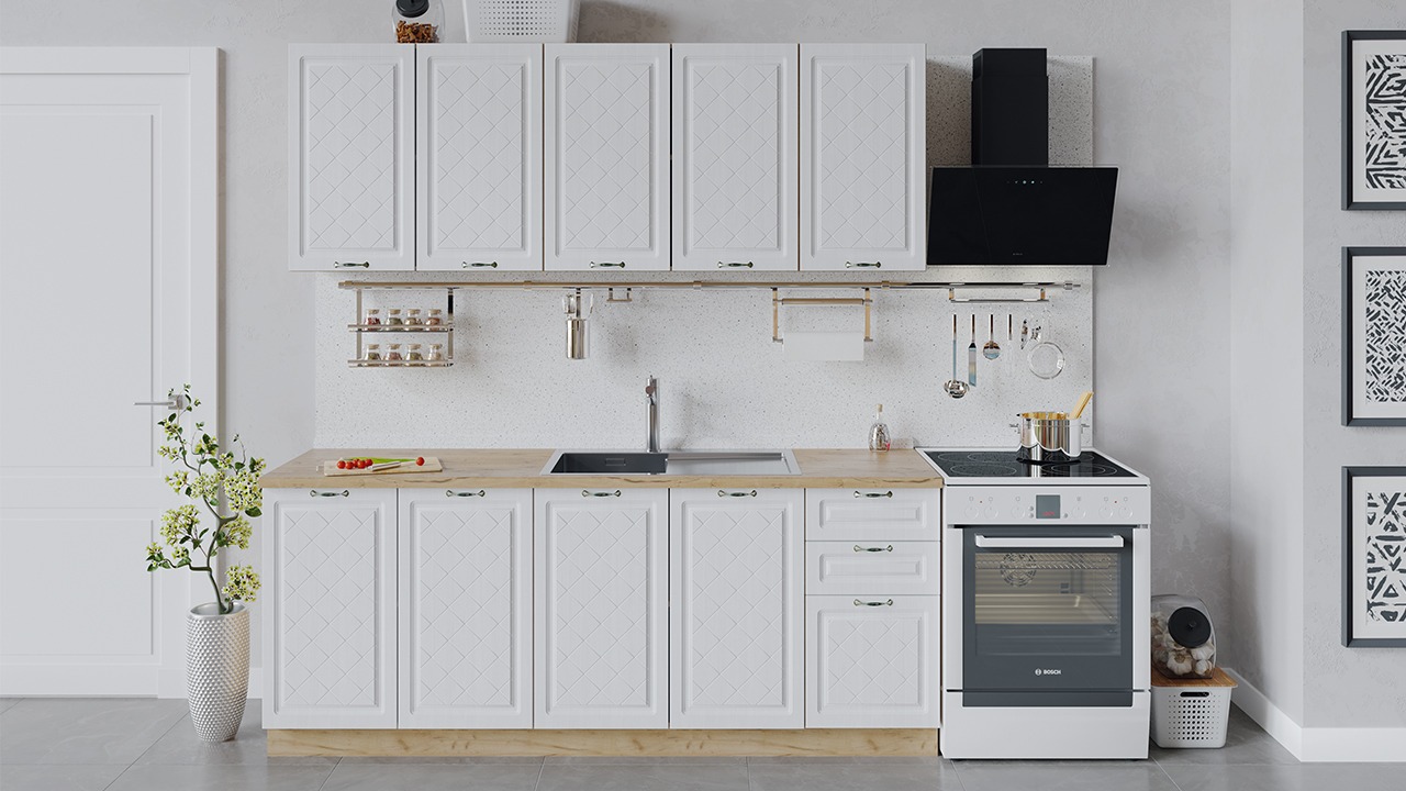 | Габаритный размер набора модулей без учета газовой плиты2 000 | Оттенок фасадаБелый | Цвет ручкиБрашированная старинная бронза |