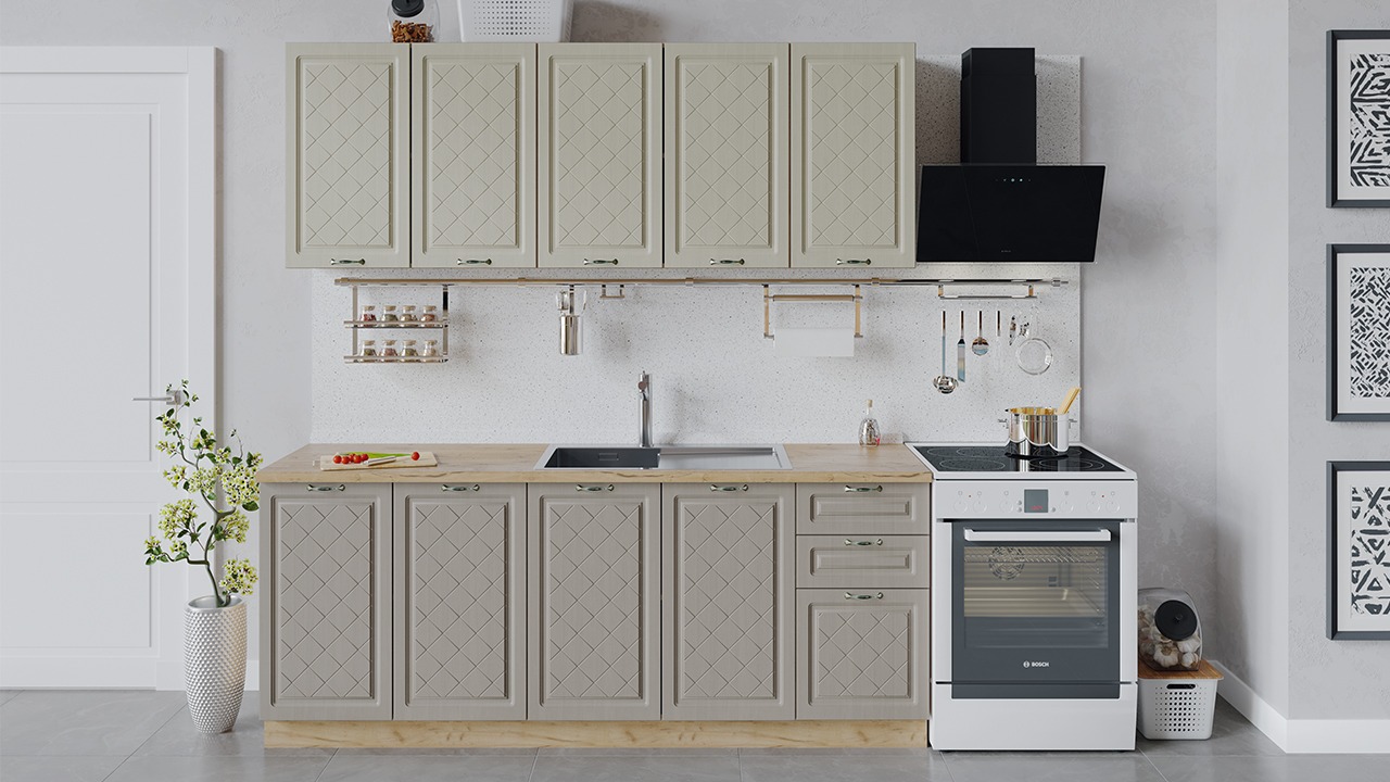 | Габаритный размер набора модулей без учета газовой плиты2 000 | Оттенок фасадаБежевый, Коричневый | Цвет ручкиБрашированная старинная бронза |