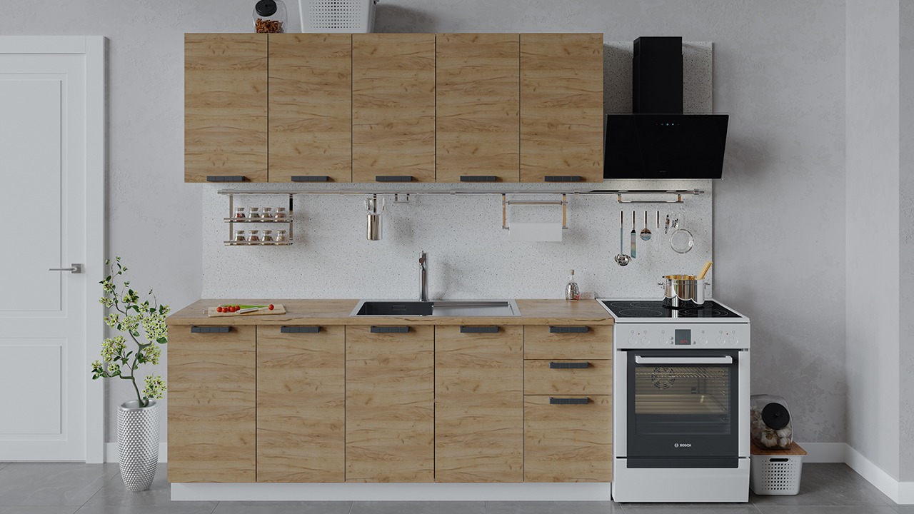 Габаритный размер набора модулей без учета газовой плиты: 200 см.