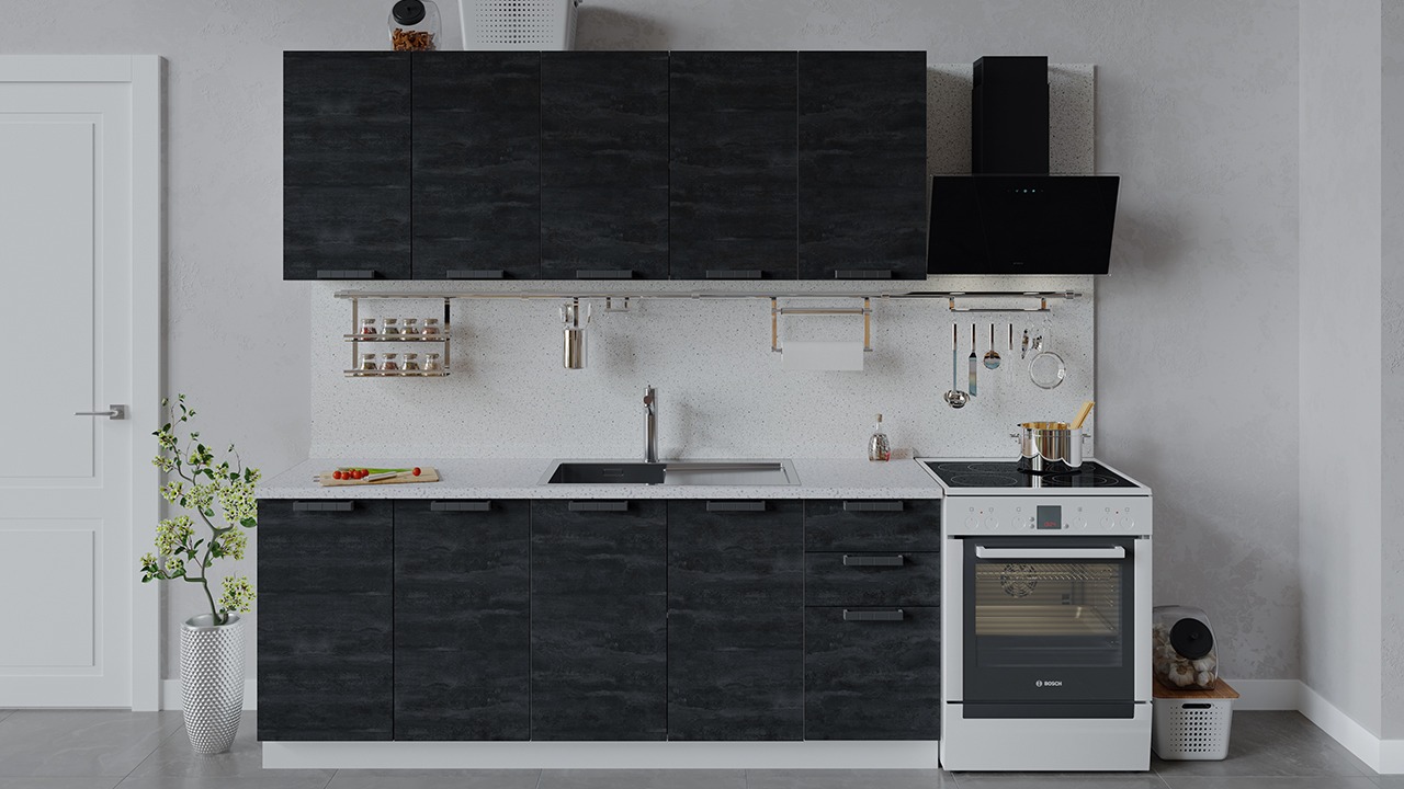 | Габаритный размер набора модулей без учета газовой плиты2 000 | Оттенок фасадаЧерный | Цвет ручкиЧерный |