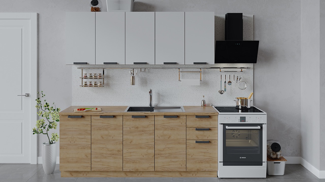 Габаритный размер набора модулей без учета газовой плиты: 200 см.