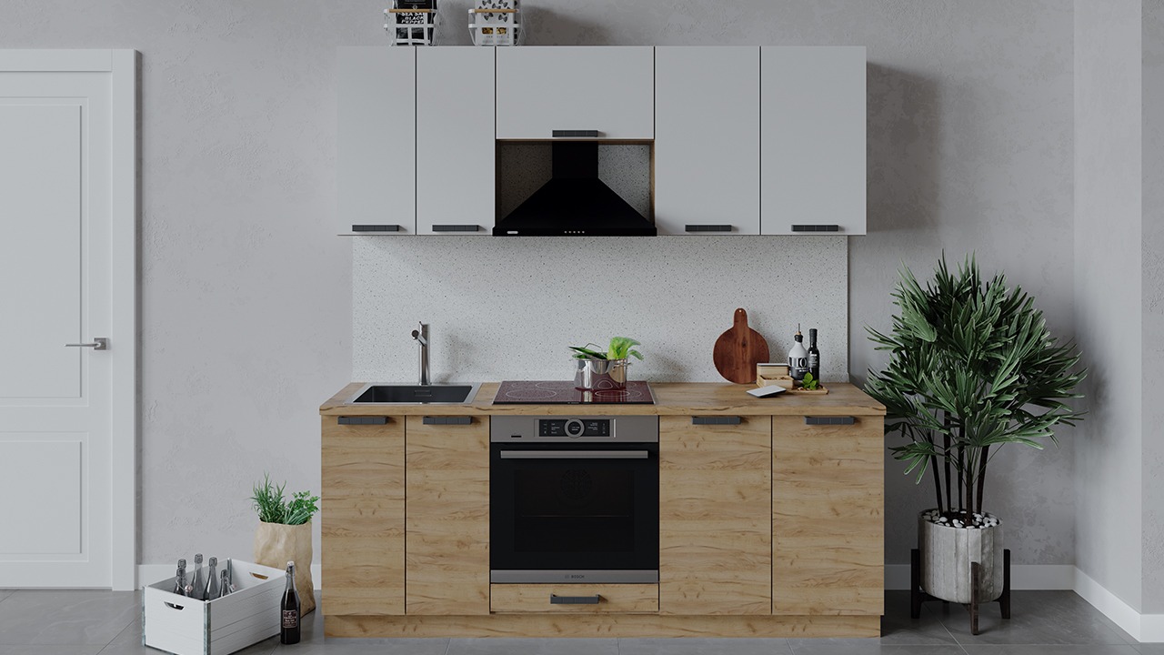 Габаритный размер набора модулей без учета газовой плиты: 200 см.
