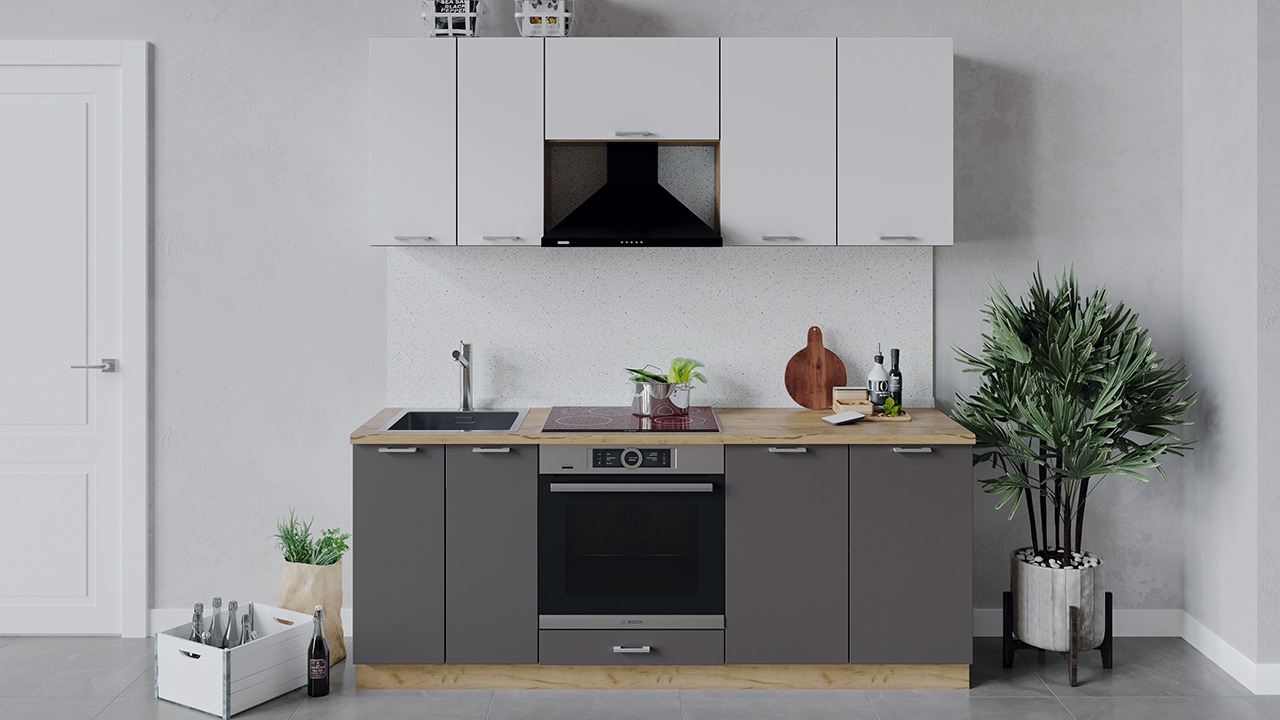 Габаритный размер набора модулей без учета газовой плиты: 200 см.