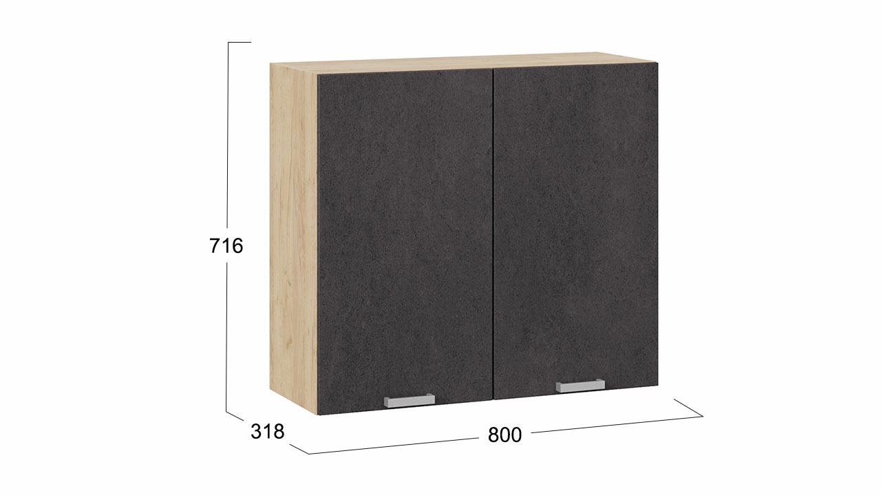 Шкаф навесной c двумя дверями «Гранита» - 1В8 Дуб Крафт золотой, Бетон графит – 2 шт.