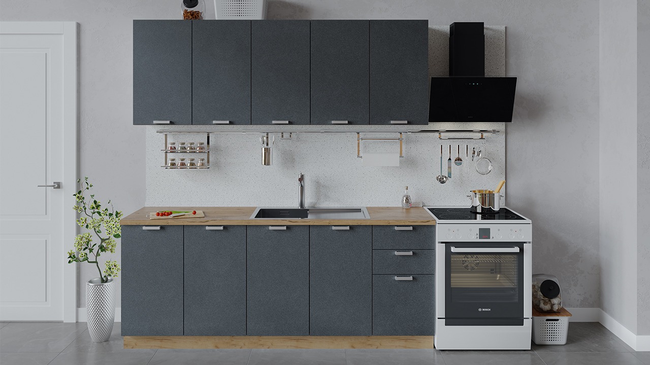 | Габаритный размер набора модулей без учета газовой плиты2 000 | Оттенок фасадаСерый | Цвет ручкиАлюминий |