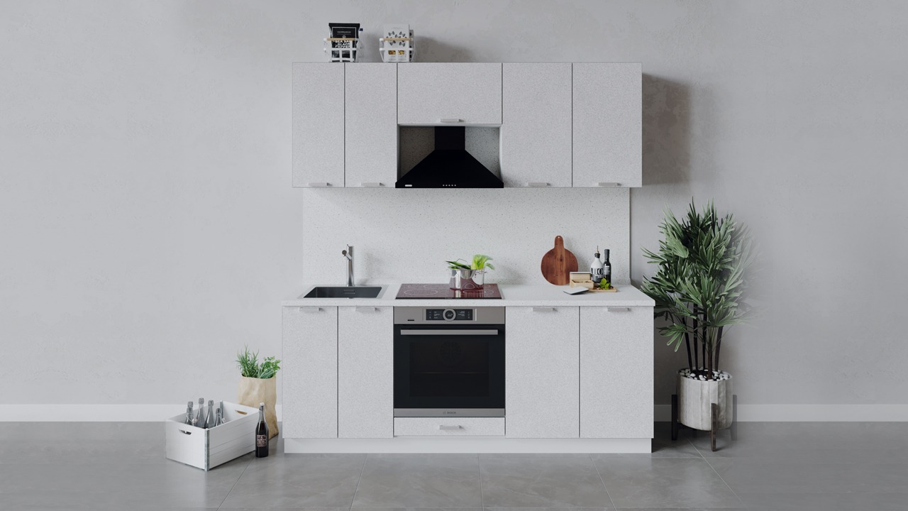 | Габаритный размер набора модулей без учета газовой плиты2 000 | Оттенок фасадаСерый | Цвет ручкиАлюминий |