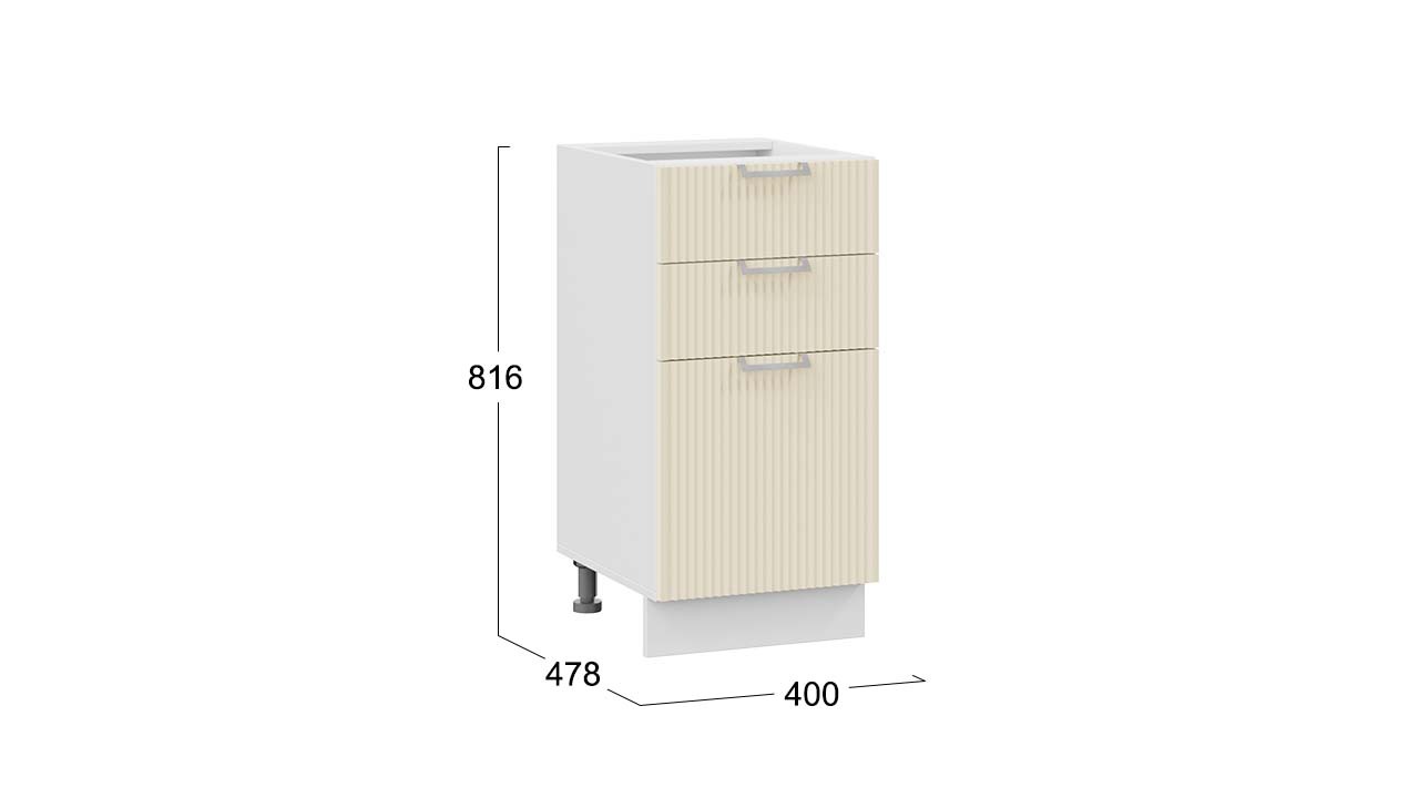 Шкаф напольный с тремя ящиками «Кимберли» - 1Н4Я3 Белый, Крем – 1 шт.