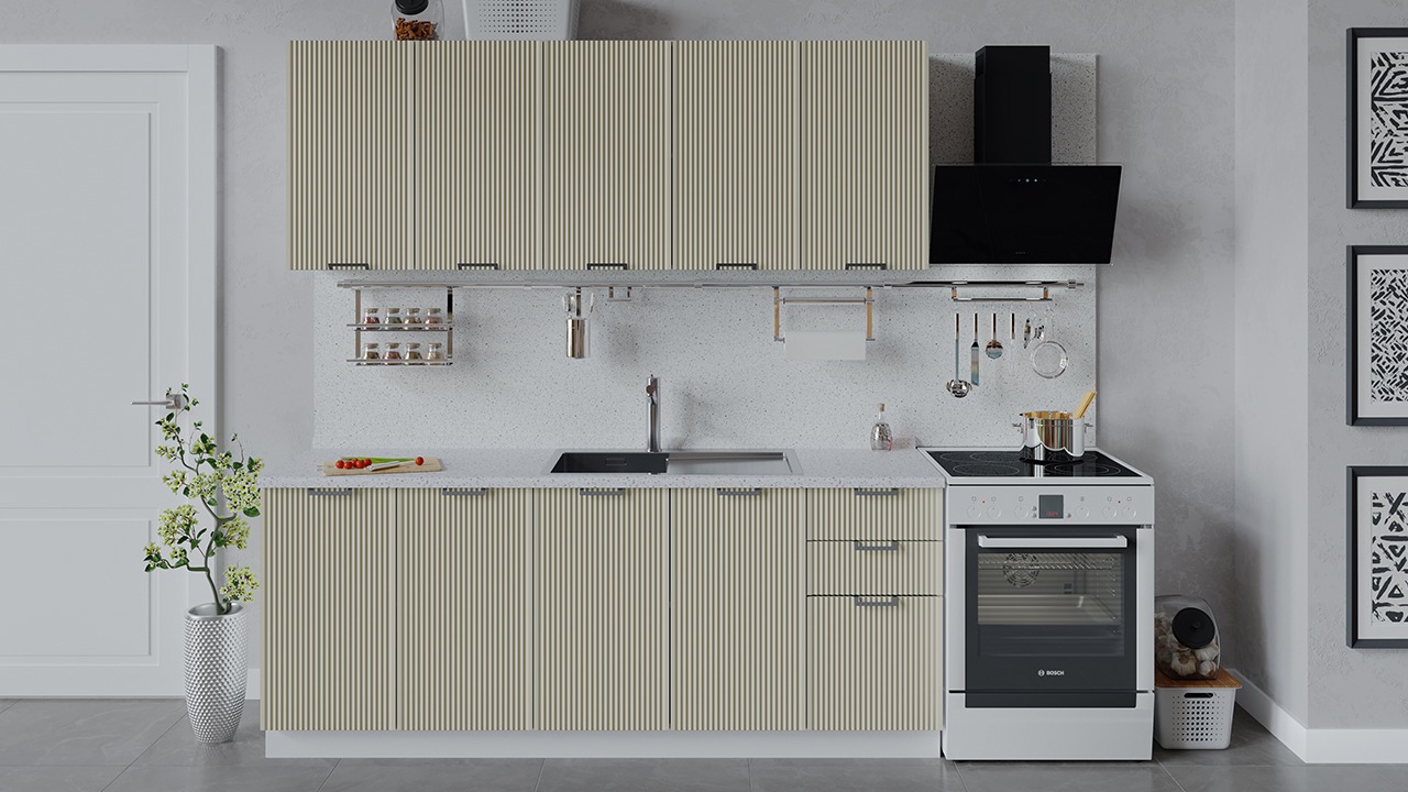 | Габаритный размер набора модулей без учета газовой плиты2 000 | Оттенок фасадаБежевый | Цвет ручкиМеталл |