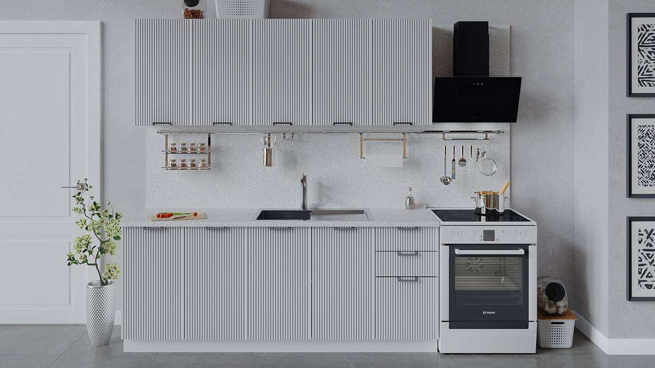 | Габаритный размер набора модулей без учета газовой плиты2 000 | Оттенок фасадаБелый | Цвет ручкиМеталл |