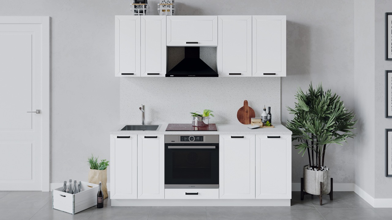| Габаритный размер набора модулей без учета газовой плиты2 000 | Оттенок фасадаБелый | Цвет ручкиЧерный |