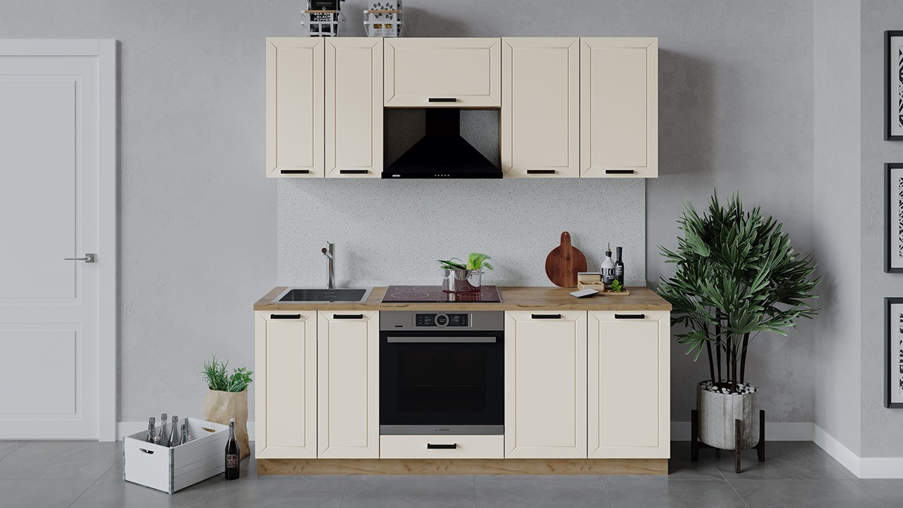 | Габаритный размер набора модулей без учета газовой плиты2 000 | Оттенок фасадаБежевый | Цвет ручкиЧерный |