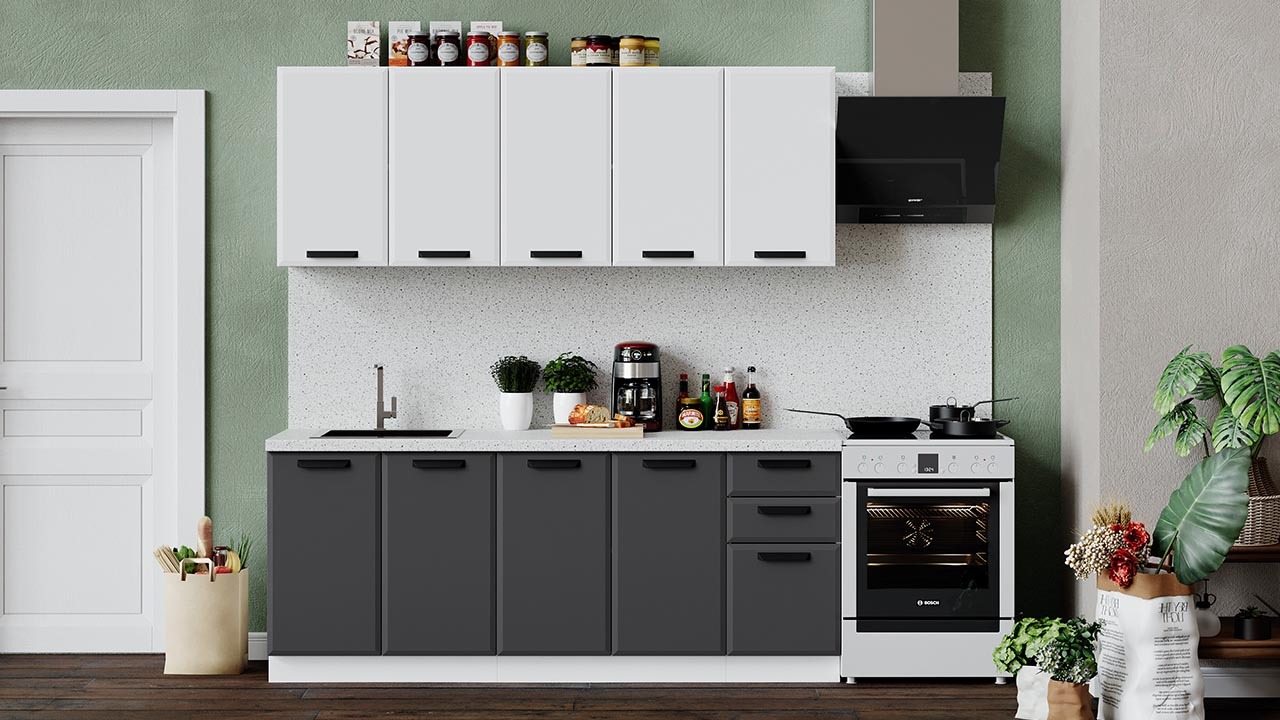 | Габаритный размер набора модулей без учета газовой плиты2 000 | Оттенок фасадаБелый, Серый | Цвет фасадаБелый супермат, Асфальт супермат |