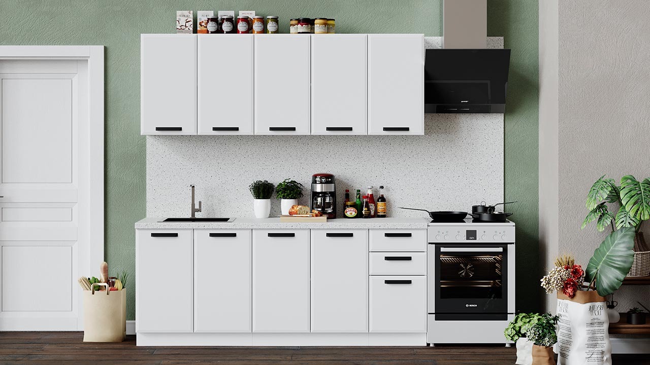 | Габаритный размер набора модулей без учета газовой плиты2 000 | Оттенок фасадаБелый | Цвет фасадаБелый супермат |