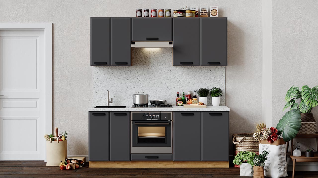 | Габаритный размер набора модулей без учета газовой плиты2 000 | Оттенок фасадаСерый | Цвет фасадаАсфальт супермат |