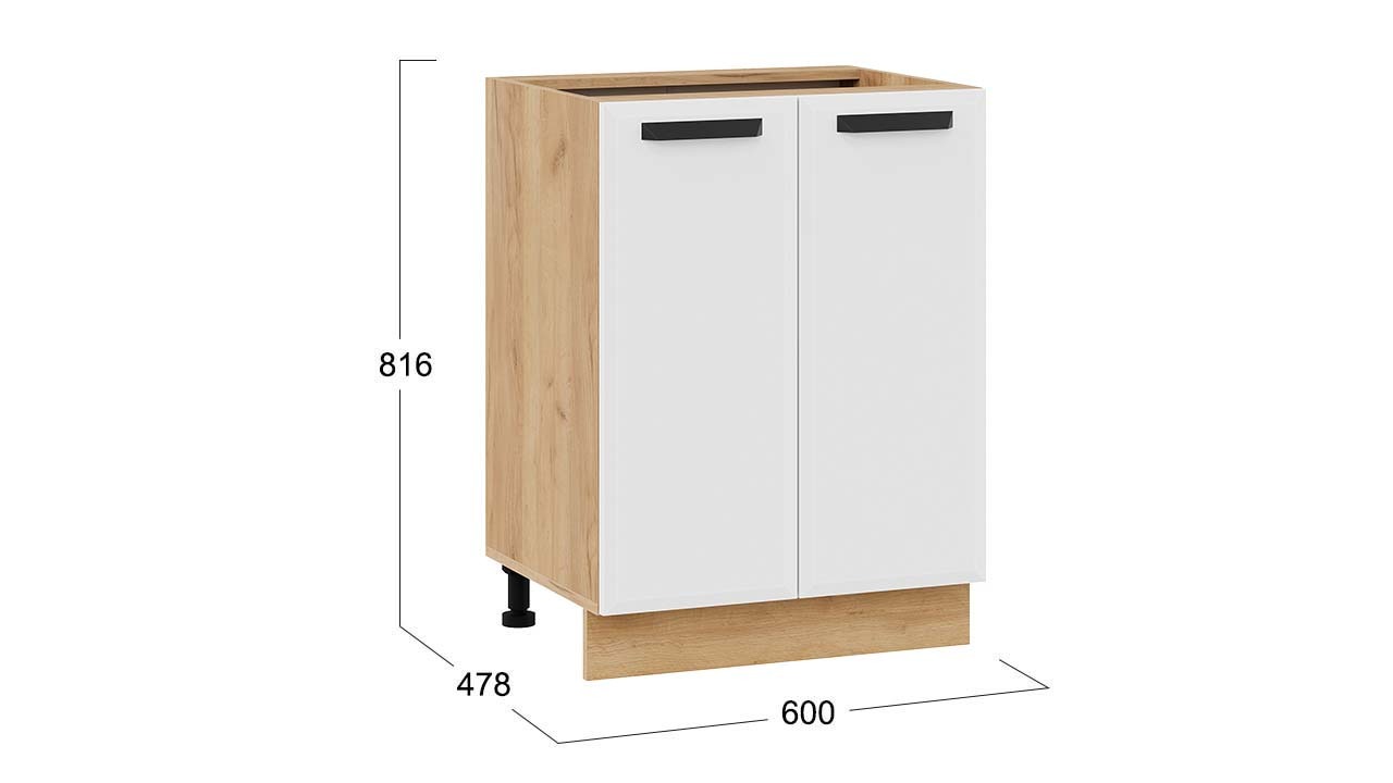 Шкаф напольный с двумя дверями «Тиана» - 1Н6 Дуб Крафт золотой, Белый супермат – 1 шт.