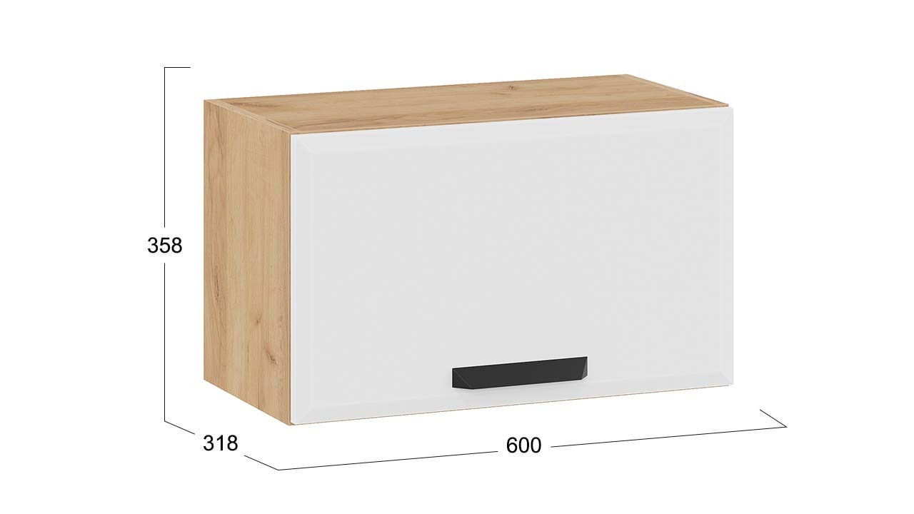 Шкаф навесной c одной откидной дверью «Тиана» - 1В6Г Дуб Крафт золотой, Белый супермат – 1 шт.