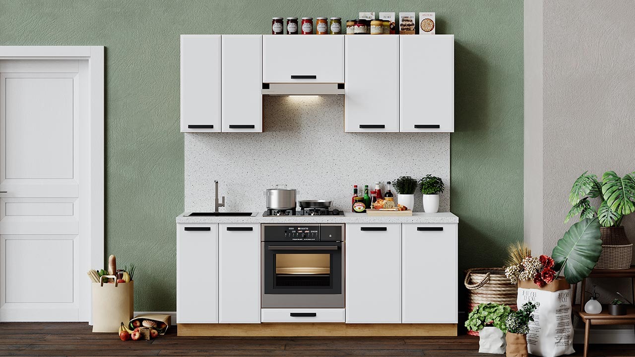 | Габаритный размер набора модулей без учета газовой плиты2 000 | Оттенок фасадаБелый | Цвет фасадаБелый супермат |