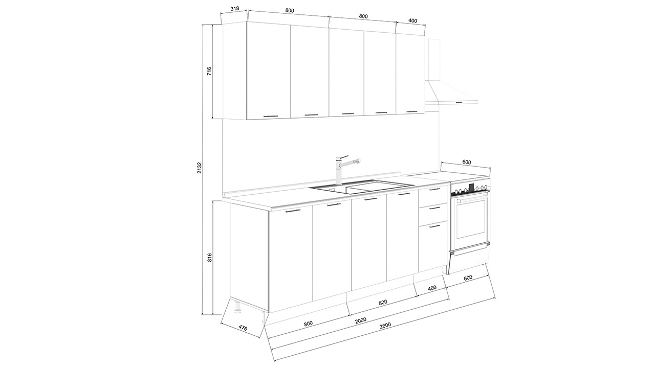 | Габаритный размер набора модулей без учета газовой плиты | 2 000 |