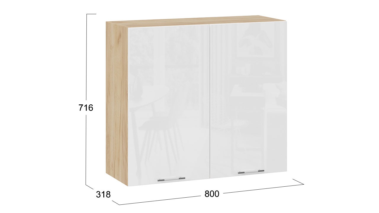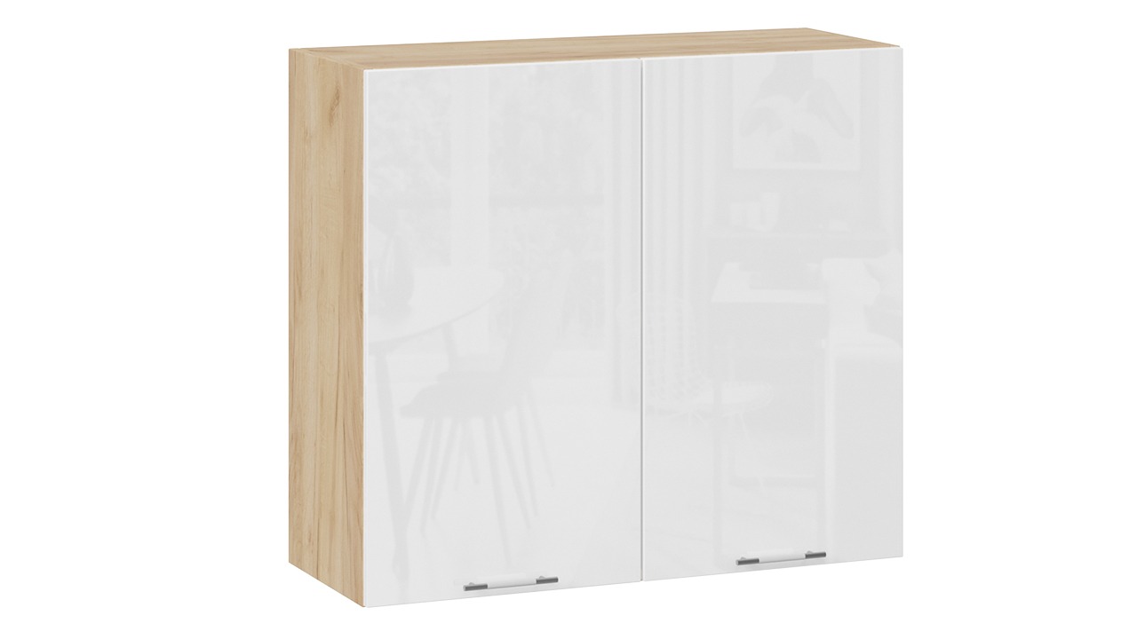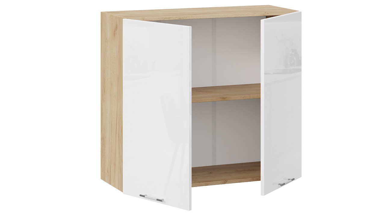 Шкаф навесной c двумя дверями «Весна» - 1В8 Дуб Крафт золотой, Белый глянец – 2 шт.