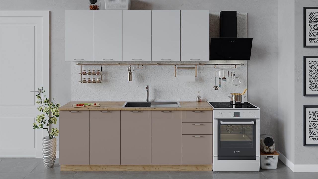 | Габаритный размер набора модулей без учета газовой плиты2 000 | Оттенок фасадаБелый, Коричневый | Цвет ручкиАлюминий, Хром |