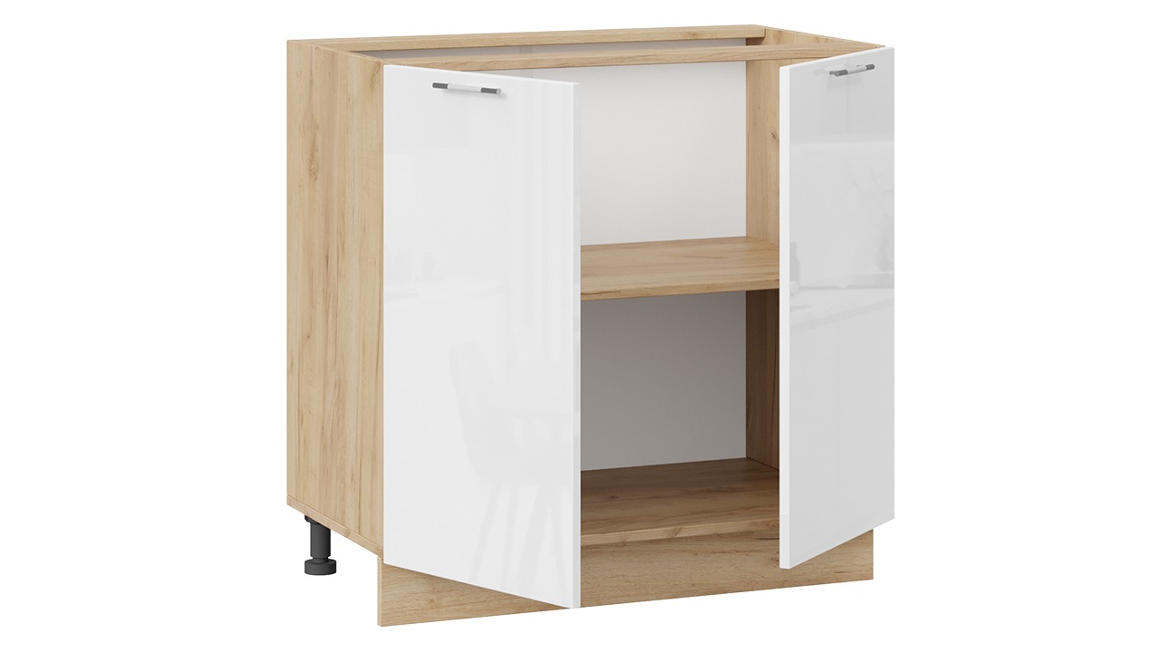 Шкаф напольный с двумя дверями «Весна» - 1Н8 Дуб Крафт золотой, Белый глянец – 2 шт.