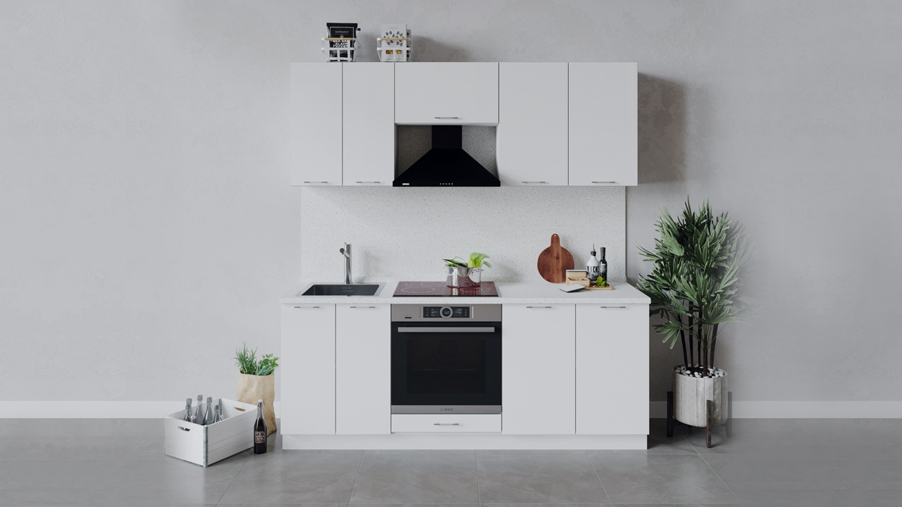 | Габаритный размер набора модулей без учета газовой плиты2 000 | Оттенок фасадаБелый | Цвет ручкиАлюминий, Хром |