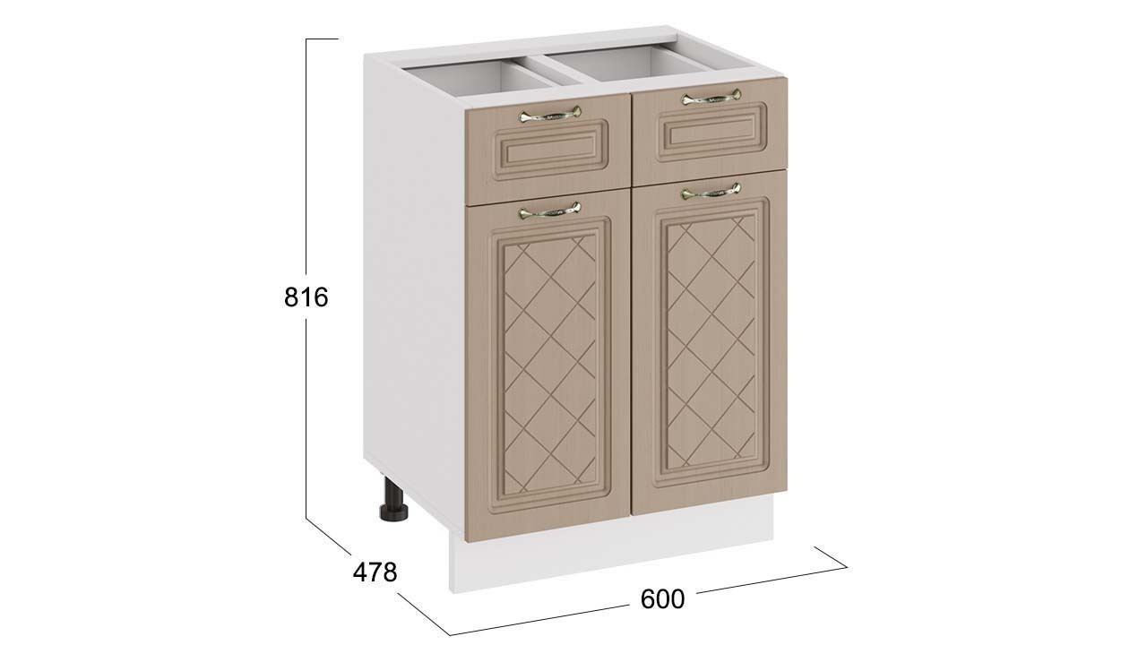 Шкаф напольный с двумя ящиками и двумя дверями «Бьянка» - 1Н6Я1 Белый, Дуб кофе – 1 шт.