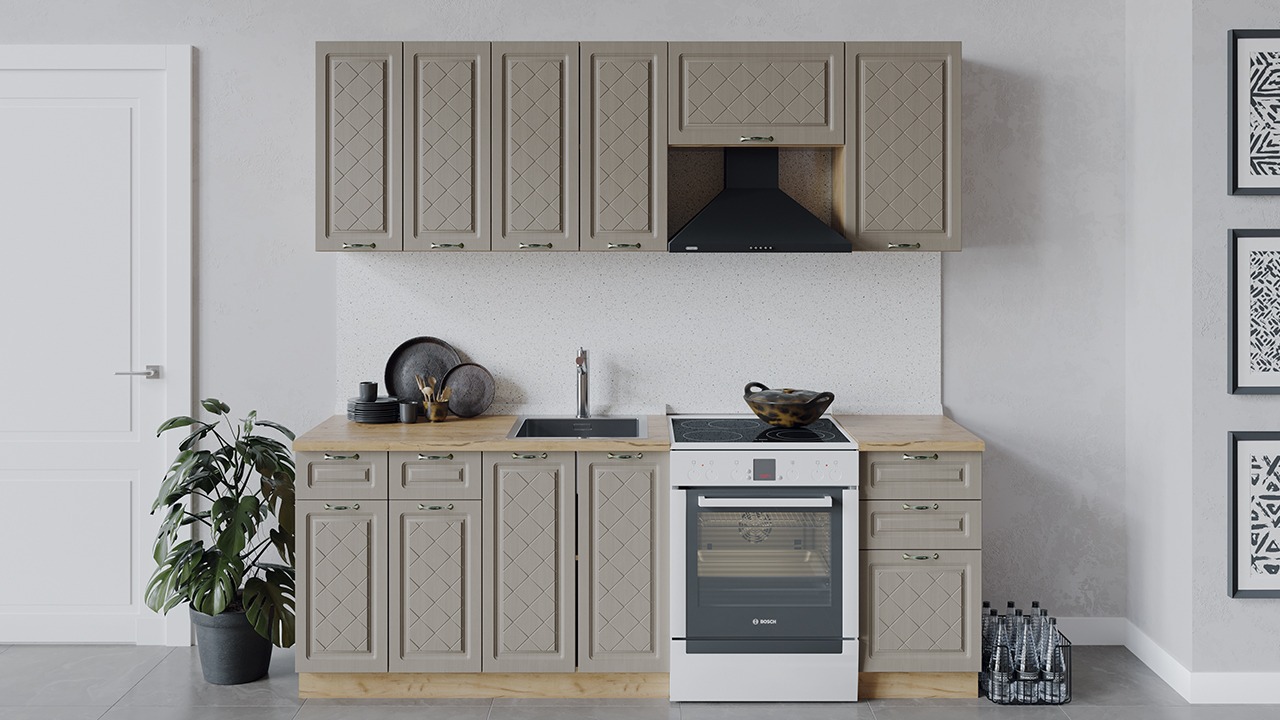| Габаритный размер набора модулей без учета газовой плиты2 200 | Оттенок фасадаКоричневый | Цвет ручкиБрашированная старинная бронза |