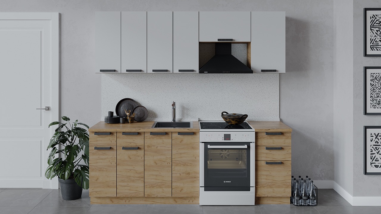 | Габаритный размер набора модулей без учета газовой плиты2 200 | Оттенок фасадаБелый, Коричневый | Цвет ручкиЧерный |
