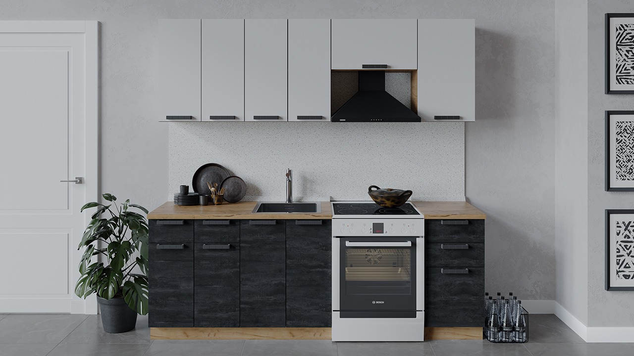 | Габаритный размер набора модулей без учета газовой плиты2 200 | Оттенок фасадаБелый, Черный | Цвет ручкиЧерный |