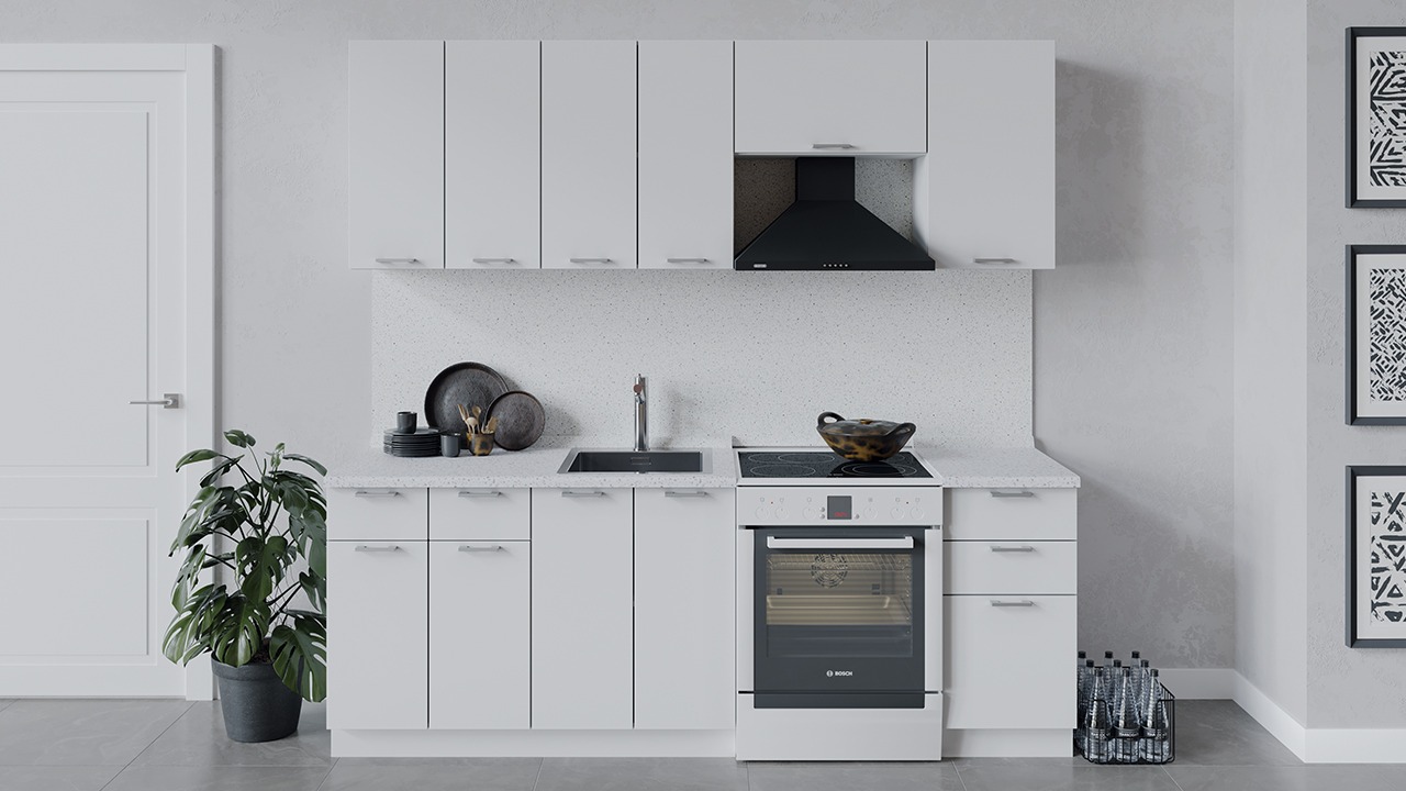 | Габаритный размер набора модулей без учета газовой плиты2 200 | Оттенок фасадаБелый | Цвет ручкиМеталл |
