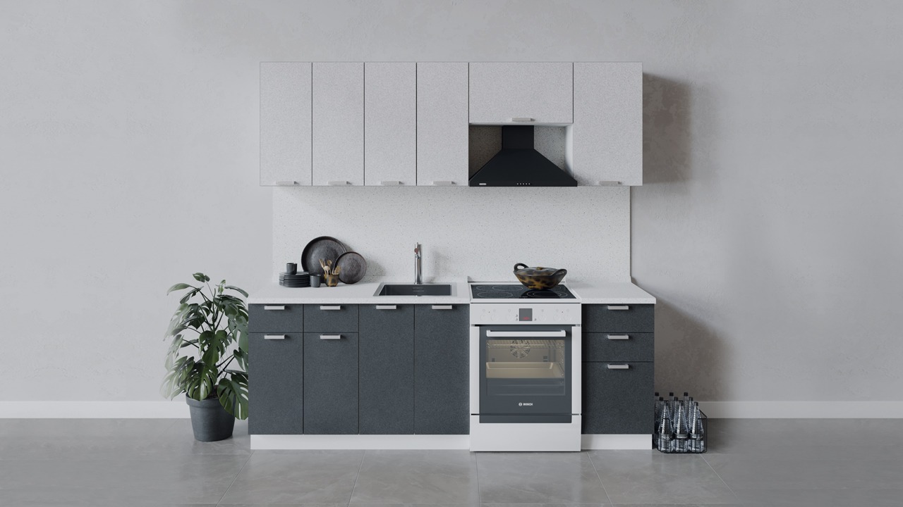 | Габаритный размер набора модулей без учета газовой плиты2 200 | Оттенок фасадаСерый | Цвет ручкиАлюминий |