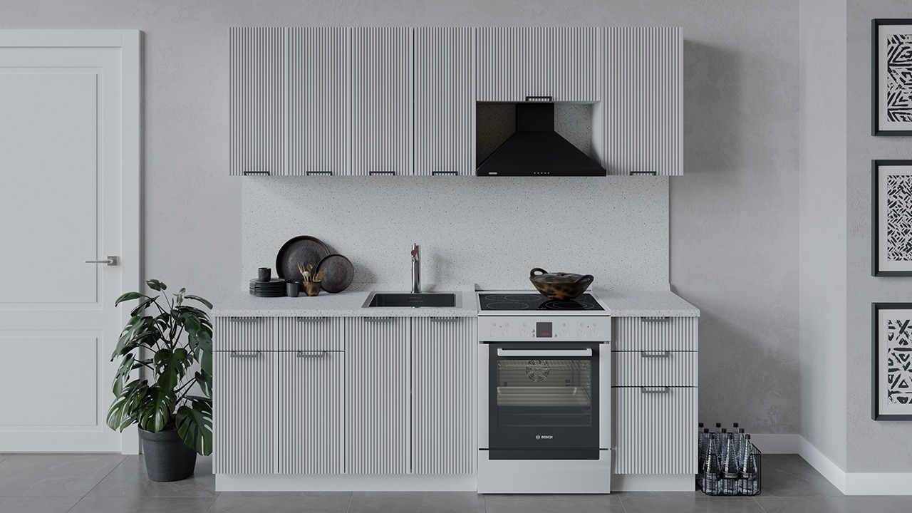 | Габаритный размер набора модулей без учета газовой плиты2 200 | Оттенок фасадаБелый | Цвет ручкиМеталл |
