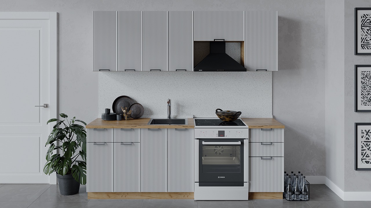 | Габаритный размер набора модулей без учета газовой плиты2 200 | Оттенок фасадаБелый | Цвет ручкиМеталл |