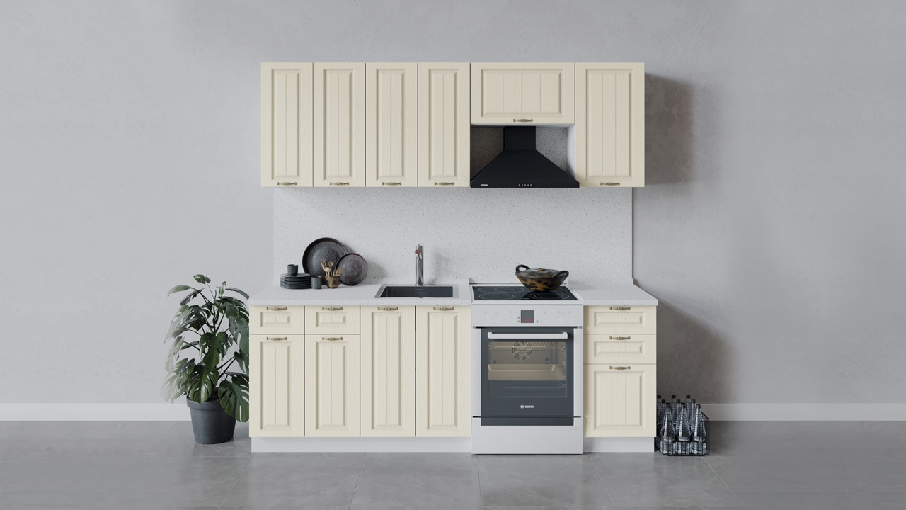 | Габаритный размер набора модулей без учета газовой плиты2 200 | Оттенок фасадаБежевый | Цвет ручкиБрашированная старинная бронза |