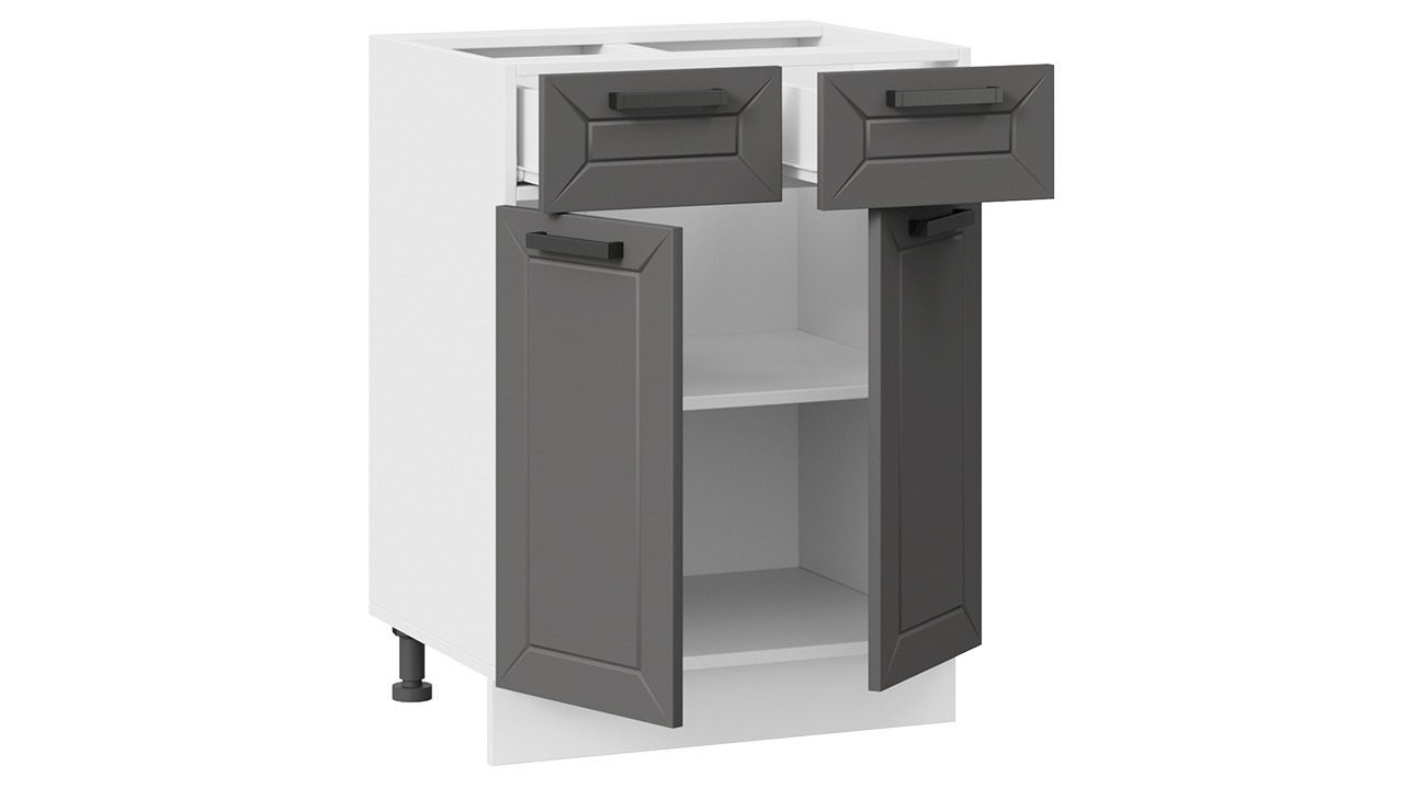 Шкаф напольный с двумя ящиками и двумя дверями «Лорас» - 1Н6Я1 Белый, Холст Вулкан – 1 шт.