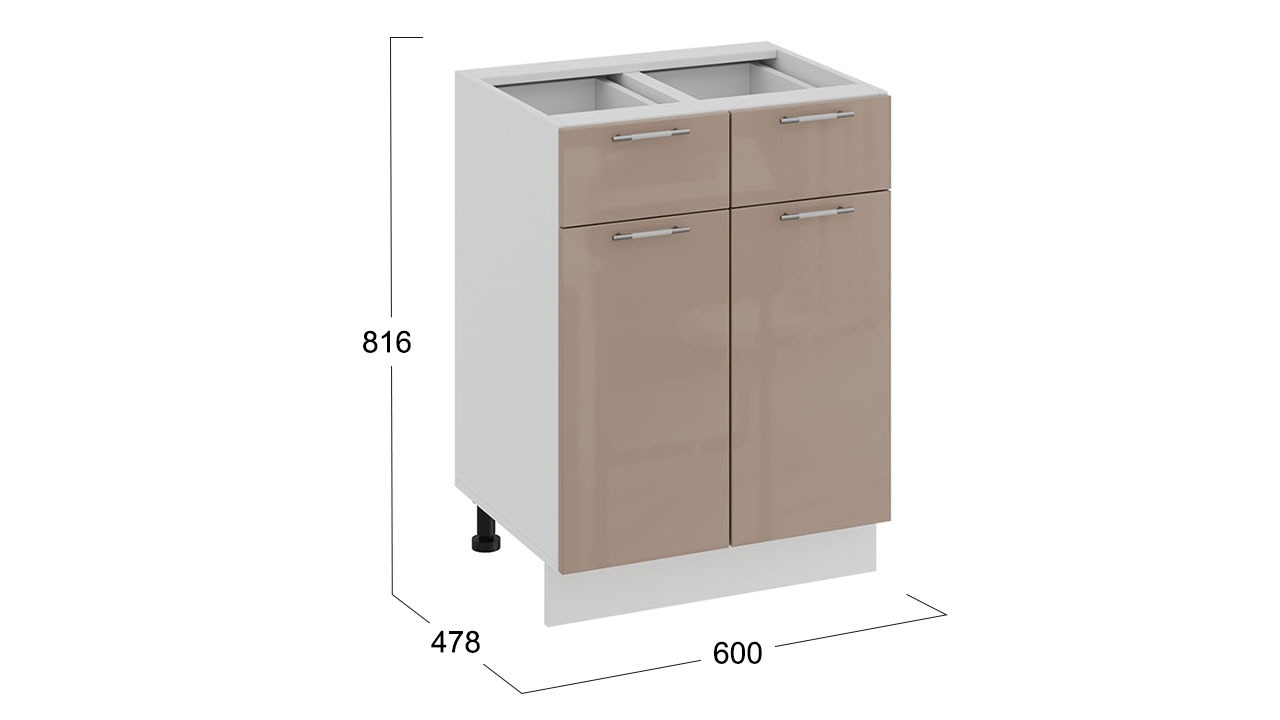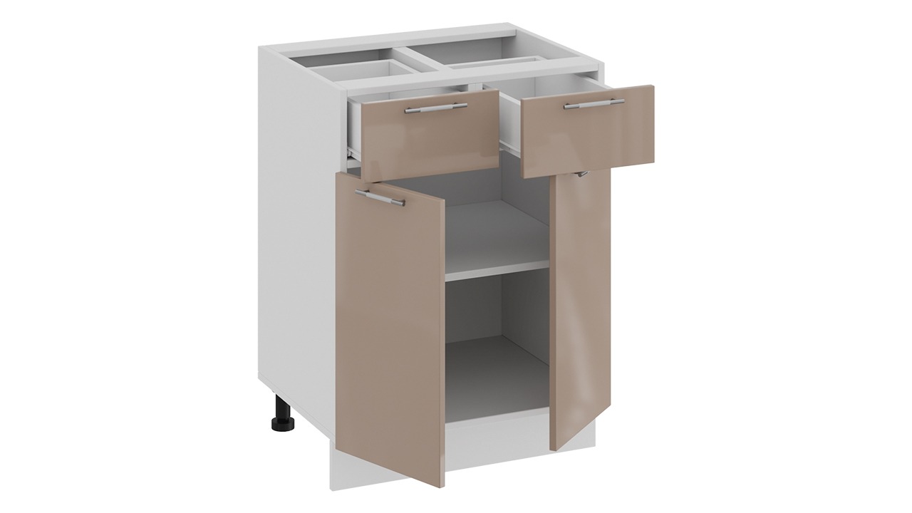 Шкаф напольный с двумя ящиками и двумя дверями «Весна» - 1Н6Я1 Белый, Кофе с молоком – 1 шт.