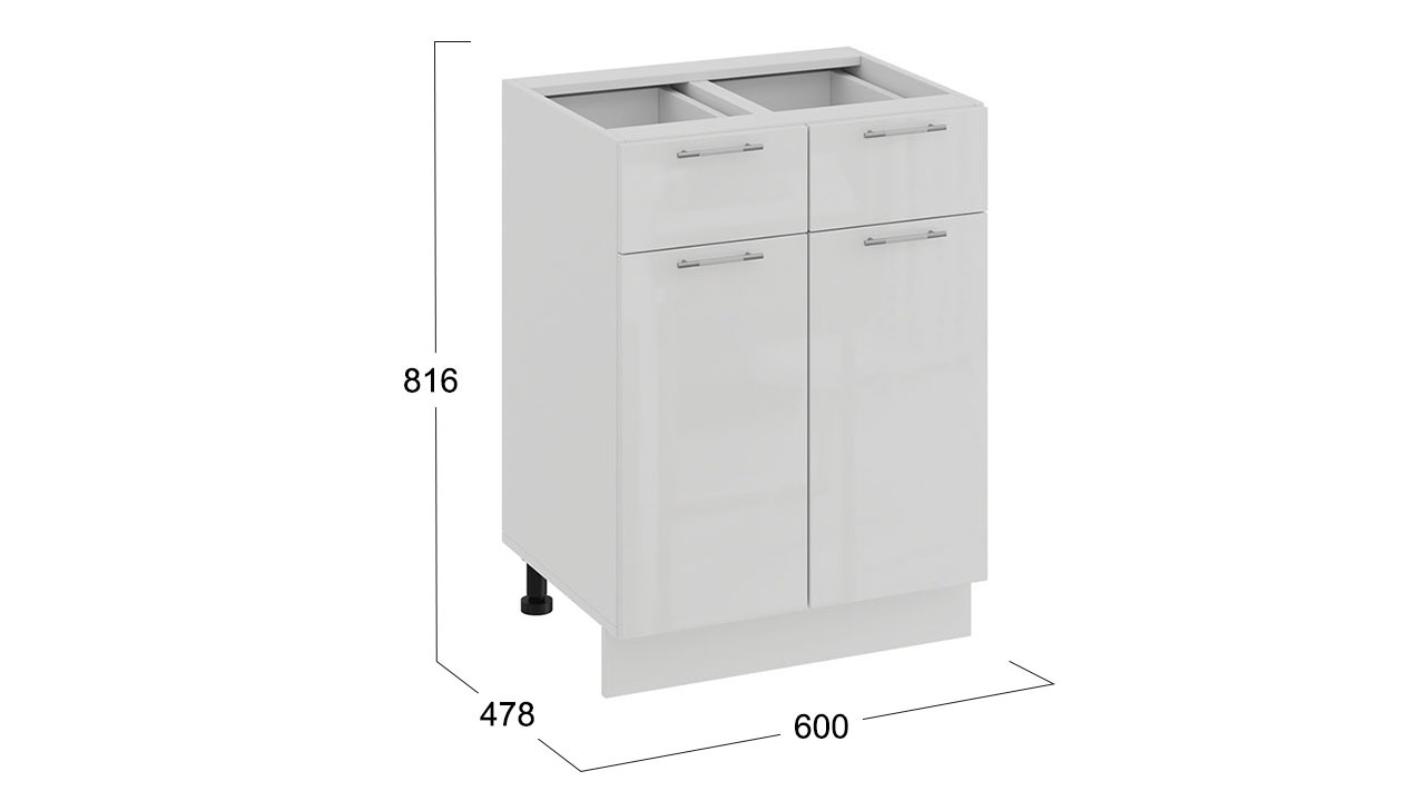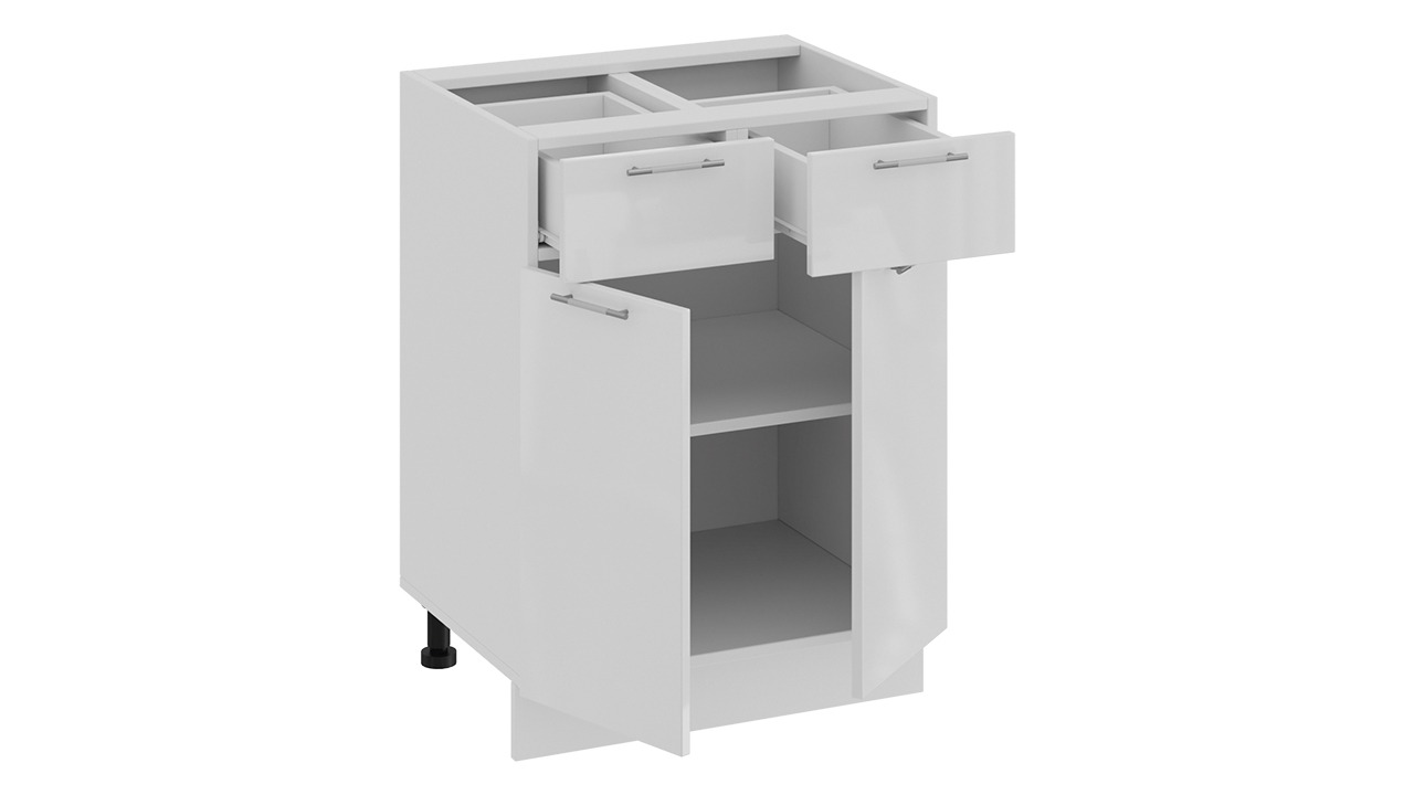 Шкаф напольный с двумя ящиками и двумя дверями «Весна» - 1Н6Я1 Белый, Белый глянец – 1 шт.