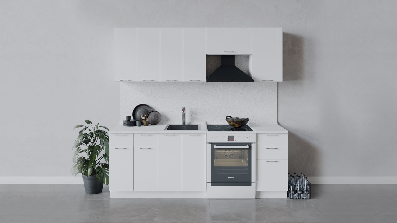 | Габаритный размер набора модулей без учета газовой плиты2 200 | Оттенок фасадаБелый | Цвет ручкиАлюминий, Хром |