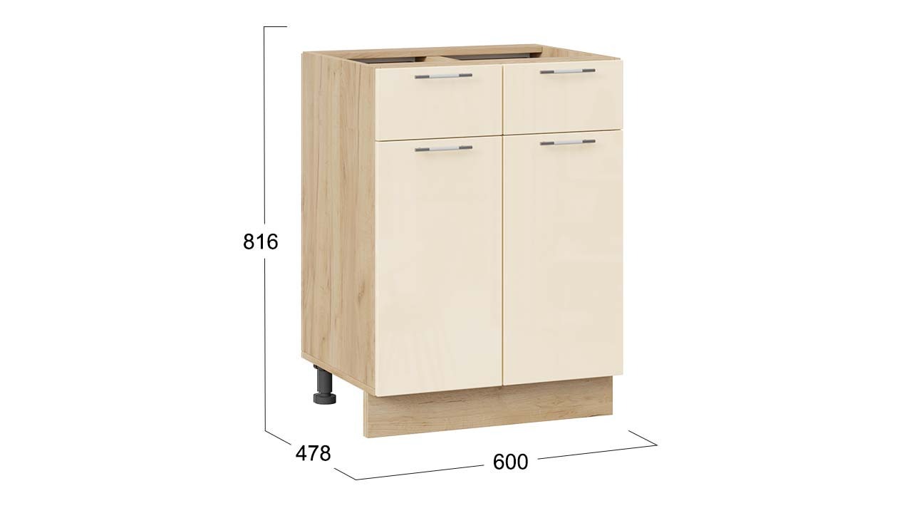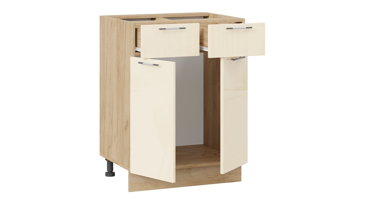 Шкаф напольный с двумя ящиками и двумя дверями «Весна» - 1Н6Я1 Дуб Крафт золотой, Ваниль глянец – 1 шт.