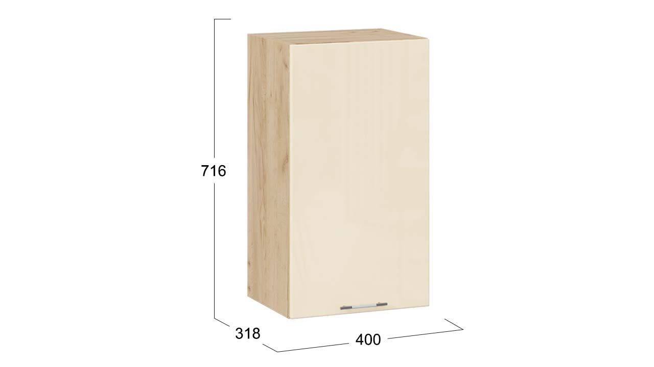 Шкаф навесной c одной откидной дверью «Весна» - 1В6Г Дуб Крафт золотой, Ваниль глянец – 1 шт.