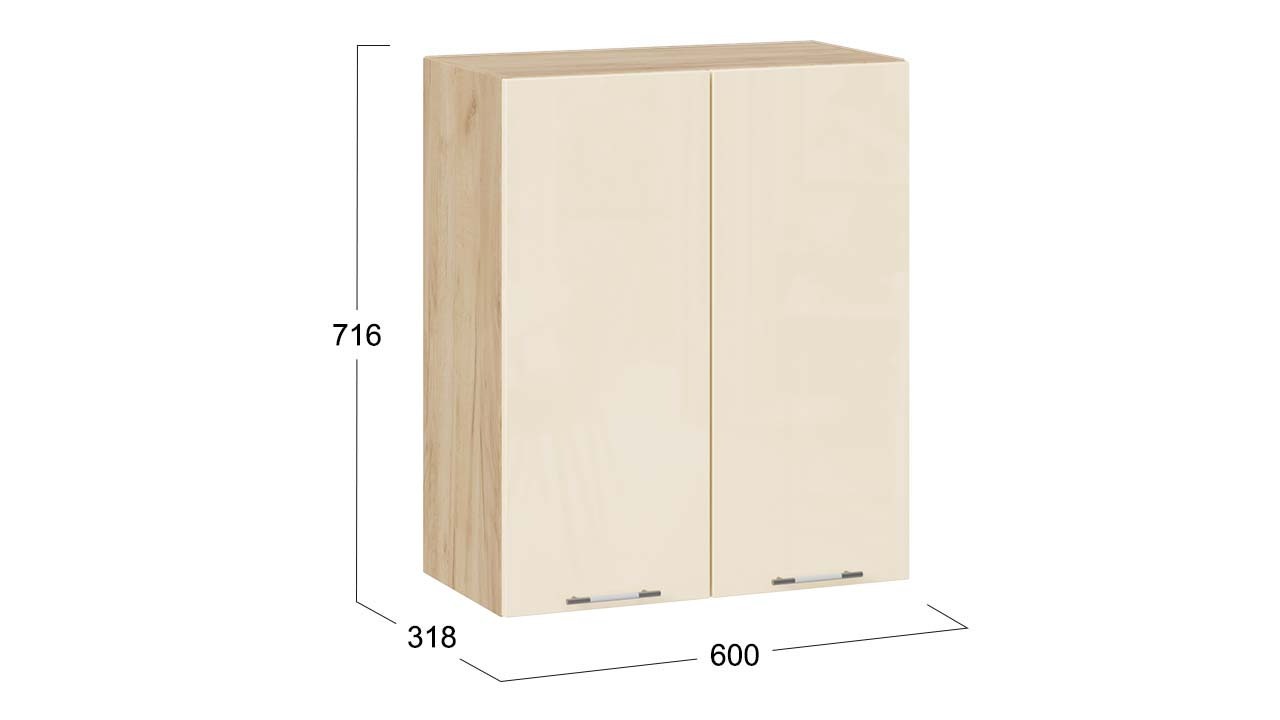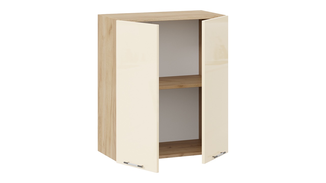 Шкаф навесной c двумя дверями «Весна» - 1В4 Дуб Крафт золотой, Ваниль глянец – 1 шт.