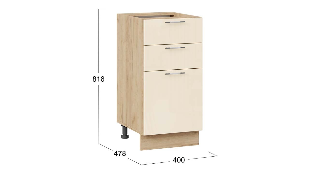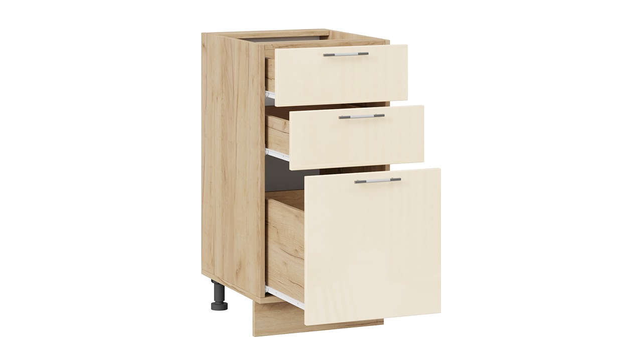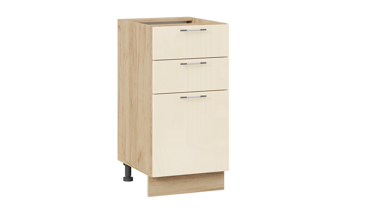 Шкаф напольный с тремя ящиками «Весна» - 1Н4Я3 Дуб Крафт золотой, Ваниль глянец – 1 шт.