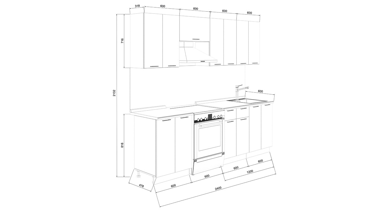 | Габаритный размер набора модулей без учета газовой плиты | 2 400 |